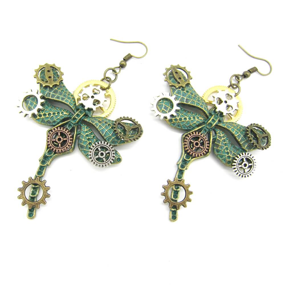En Planeta Steampunk™, nos enorgullece ofrecer una amplia selección de joyas steampunk únicas, incluyendo estos impresionantes pendientes de libélula. ¡Agrega un toque de naturaleza y estilo a tu look con estos hermosos aretes de libélula steampunk!