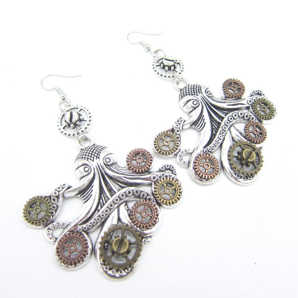 Nuestros aros pulpo están hechos de los mejores materiales, incluyendo latón, cobre y acero inoxidable, lo que garantiza su durabilidad y resistencia. Cada detalle se ha cuidado para crear una obra de arte de joyería, desde los engranajes cuidadosamente dispuestos en los tentáculos del pulpo hasta la combinación de tonos metálicos para crear un efecto visual impactante.