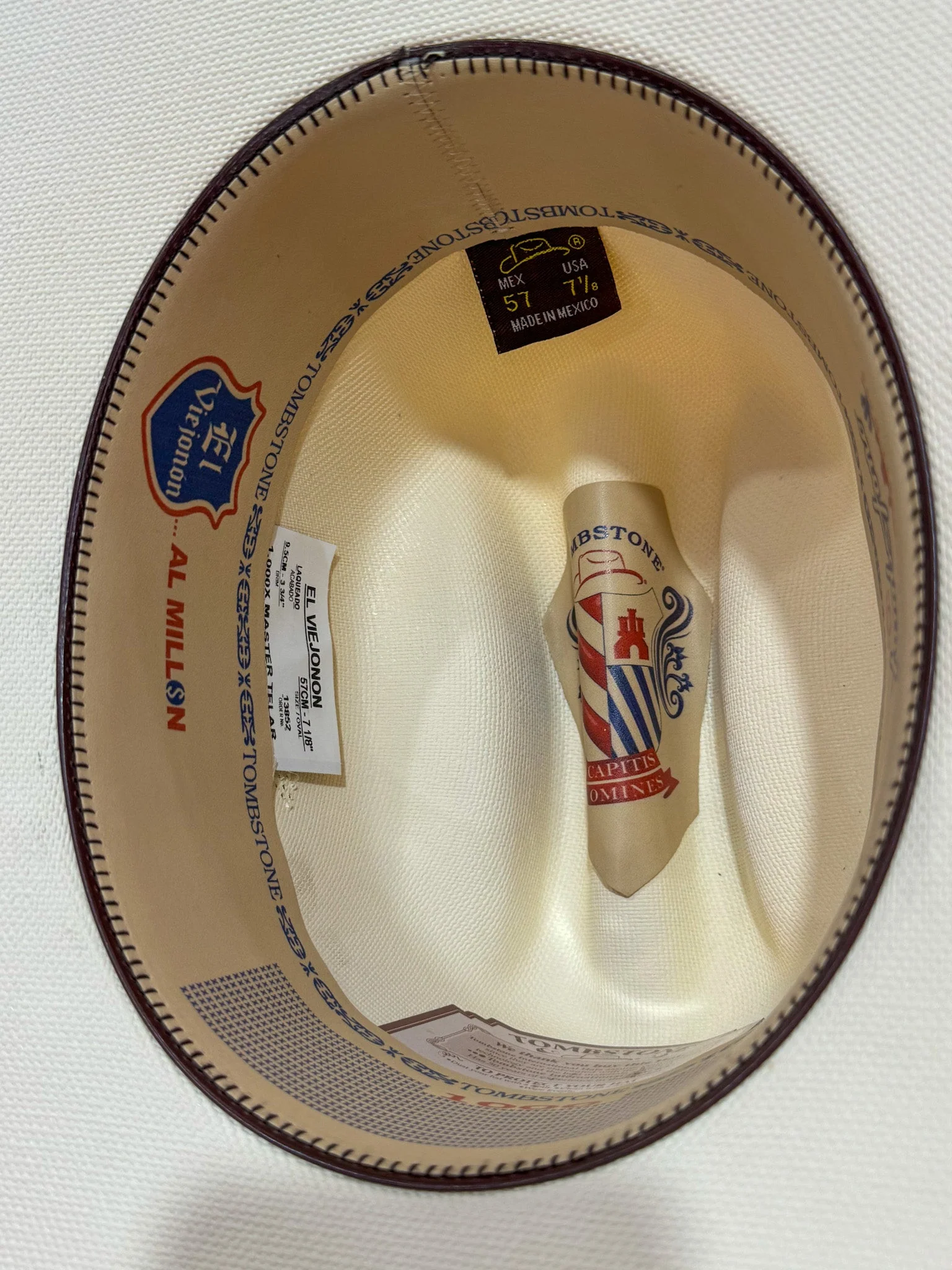 Sombrero fino copa alta estilo El Viejón material telar master calidad 1000x, es un sombrero muy cómodo, ligero ideal para usar en cualquier clima, es un sombrero con mucho porte y elegancia con su pluma que le da un toque especial.
