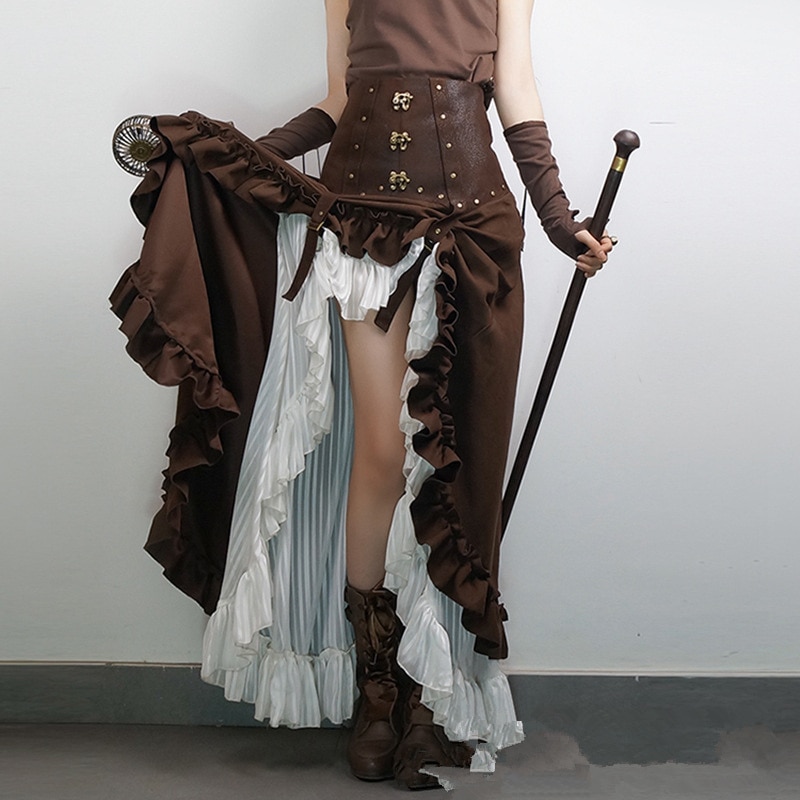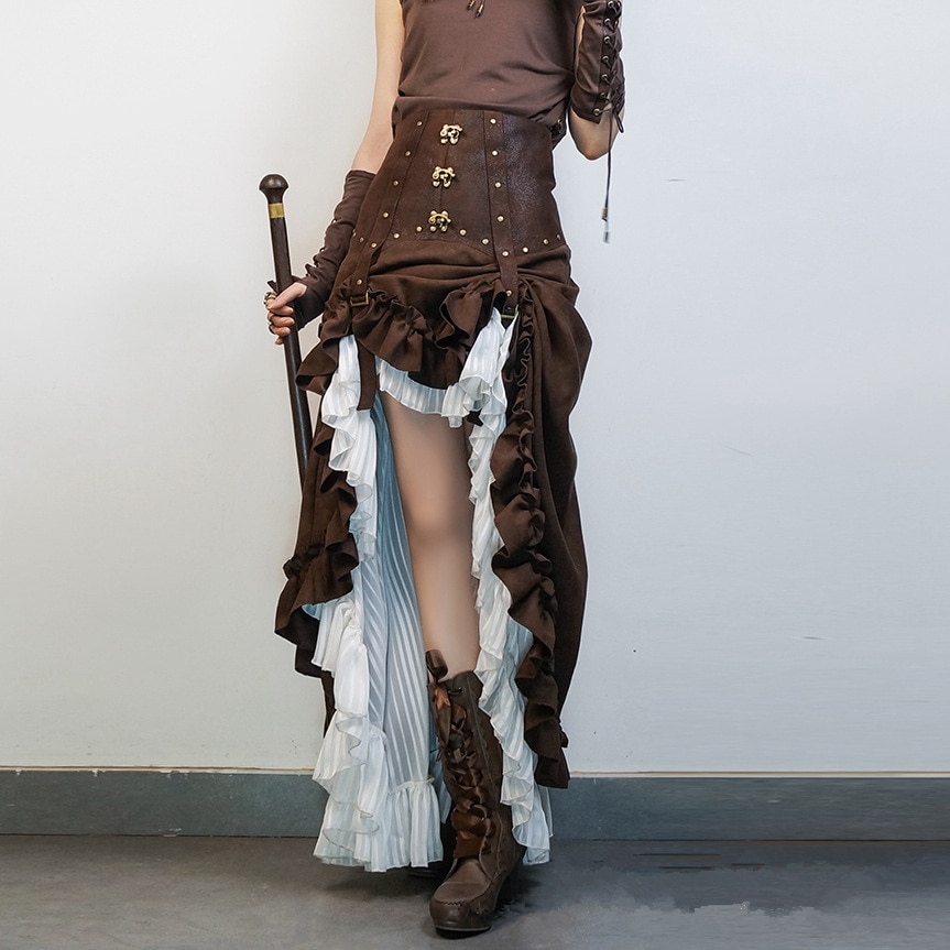 Nuestro catálogo cuenta con faldas Steampunk de diferentes largos y estilos, desde modelos cortos y ajustados hasta faldas largas y fluidas que se mueven con gracia al andar. Todas ellas están diseñadas para resaltar la figura femenina y crear una silueta elegante y sofisticada.