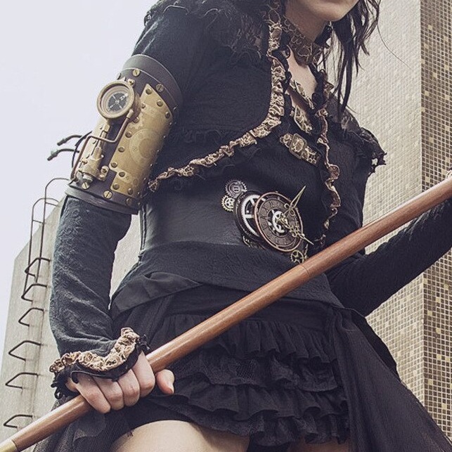 Los Guantes Steampunk son mucho más que simples accesorios, son un símbolo de aventura y rebeldía. Nuestro Guante Brazalete es una declaración audaz de estilo y elegancia. Confeccionado con materiales de alta calidad y detalles inspirados en la maquinaria ingeniosa, este guante captura la esencia del Steampunk en cada puntada. Imagina lucir este guante en una fiesta temática o como parte de tu vestuario diario, deslumbrando a todos con su diseño intrigante. Sé el centro de atención y despierta la admiración de todos con este guante brazalete que combina lo clásico con lo vanguardista.